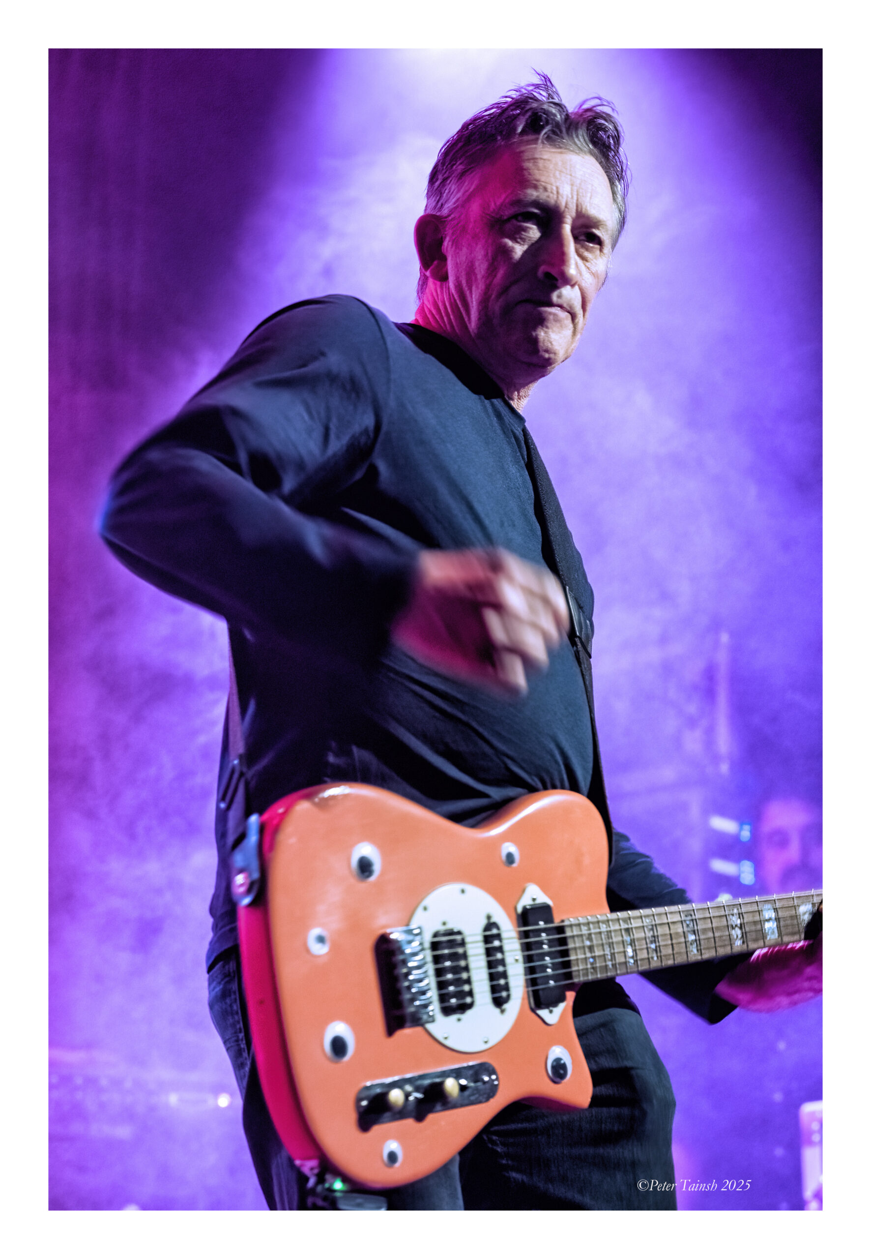 Then continuing with the same album, the echoing, hopping riffs of ‘Swamp Thing’ filtered through; with guttural stripped down percussive and highly acidic streaks of keyboard – it sounded fresher than ever before. Theming on the current strange times and end of the world, apocalyptic scenario, Vox ended the main set on another new song, ‘Feels like the End of the World’: a lyrically comic folk rhyme with a spoken word interjection. For the encore, Chameleons focussed on their 1983 debut album, ‘Script of the Bridge’, playing ‘In Shreds’, ‘Second Skin’ and ‘Don’t Fall’ in succession with the audience in free-flow engagement. Utterly magical, well produced and simply one of the greatest shows this year.