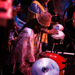 Wobble’s sons, John Tian Qi Wardle and Charlie Tian Yi Wardle, then came on stage to perform on the Chinese stringed instrument, the Erhu, and drums respectively; the band performed ‘Java’ with the boys’ sirenic interlude of the Erhu and a minimalistic drum solo. They also played ‘Careering’, with electronic distorted guitar pedal effects as well as the two tracks from Wobble and his son’s band Tian Qiyi’s recently released album, ‘Red Mist’; the title track opened on the rattlesnake shakes of the maracas and ancient whinings of the Erhu and had a grungy feel played with slow jazz drums and Tian Qi on vocals. They also did the album single, ‘Incantation’, which saw Tian Qi wildly manipulating the Erhu on the pedal. Invaders of the Heart closed their two-and-a-half hour set with the inclusion of ‘Visions of You’, which was originally a collaboration with the late Sinead O’Connor.