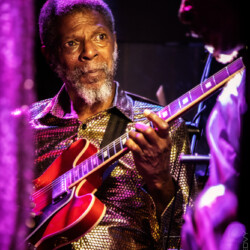 Eric played more acoustic guitar for a series of tracks from his new album, playing without stopping as they were recorded on the release, performing the woody strokes of ‘Southern Rock’, with its cross-cultural citations on the UK and USA, ‘Drag Time’ and the repetitive drive of ‘Badhat Town’. He played further new material, doing a dark psychedelic interlude for ‘Standing Water’, not heard on the release, and similarly on electric guitar at the end of ‘Days of My Life’ from his 2016 studio album, ‘AmERICa’.