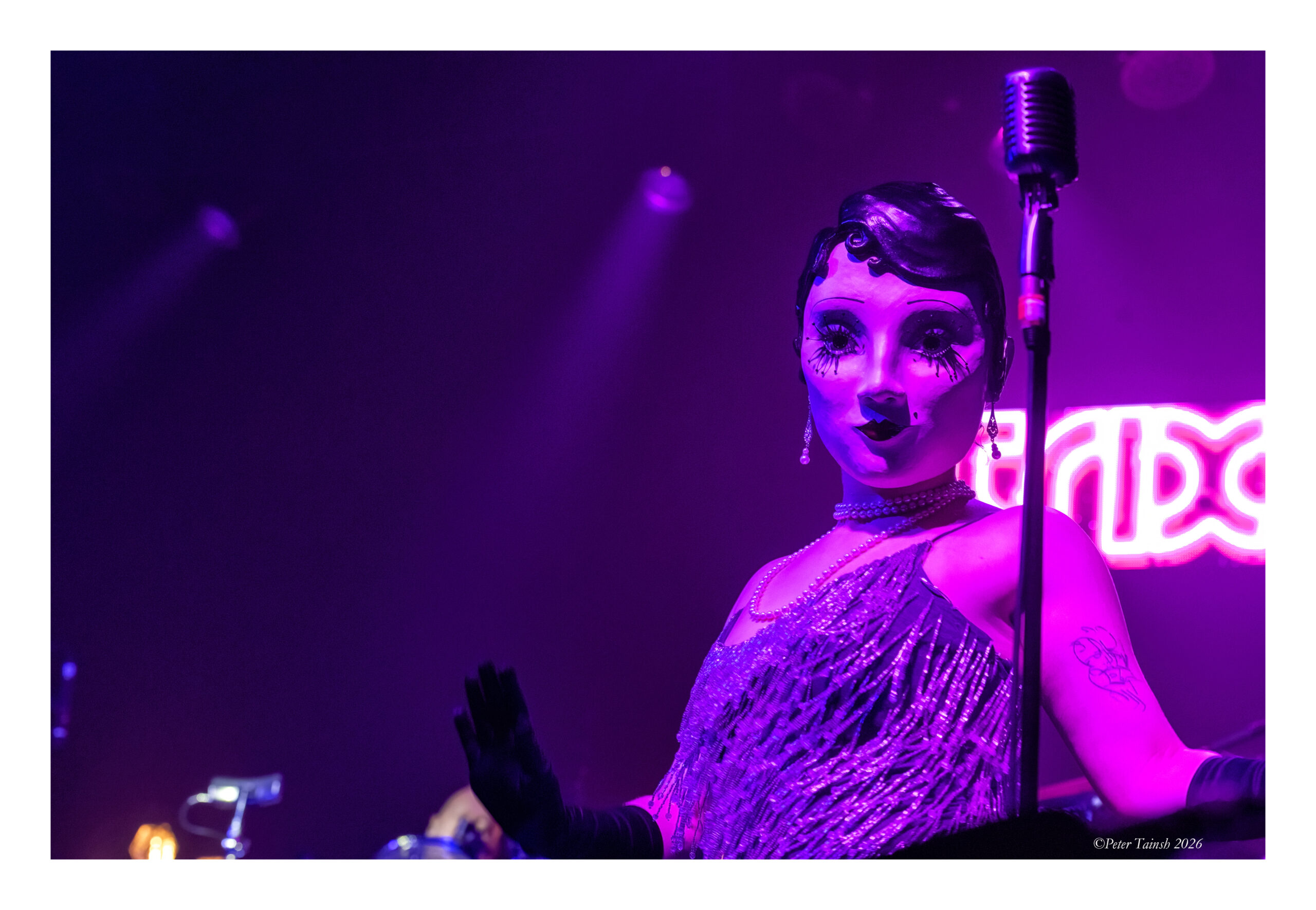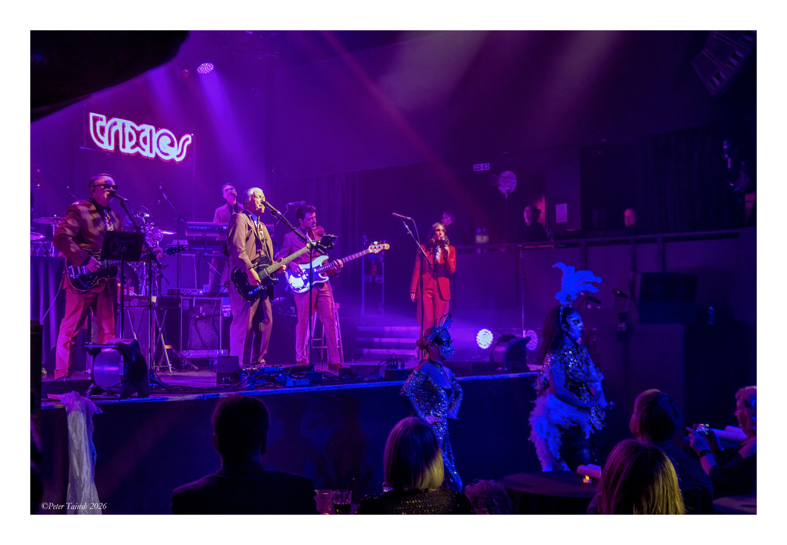 With a jazz club vibe set amongst tables and chairs, the album launch night was made up of two sets, with the band playing the new release in its entirety in track order in the first half. After an electrically charged flickering sound emitted from the neon ‘Trixies’ sign up on the wall behind the stage, Trixies began the proceedings on first track ‘What More Can I Say’, its pastel shades of dreamlike guitar perfectly entwined with Tilbrook’s vocals. Then the gentle acoustic guitars and harmony of ‘You Get the Feeling’ were accompanied by a 1920s-style Betty Boop masked dancer wearing a jewelled rah-rah dress.