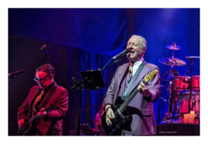 One of the album’s best songs, ‘Why Don’t You’, carried an addictive rockabilly drive with Steve Smith (percussion, vocals) and Simon Hanson’s (drums) double percussion amongst Melvin Duffy’s pedal steel guitar sounding even more lifted than on the record; they were joined by two cabaret dancers who starred in the music video, although not enough spotlight was granted them on the ground level under the stage. Difford’s own song, ‘It’s Over’, was sung audaciously solo by him alongside Tilbrook’s fretwork irregularities and wah-wah bends; the latter could have been even more trippy as on the recorded version. The band then headed into ‘The Jaguars’, with frantic sliding combs of pedal steel. Squeeze closed this set on the two interlocking parts of final tributing tracks ‘Trixies’, with the swing of ‘Part Two’ seeing the dancers come back.
